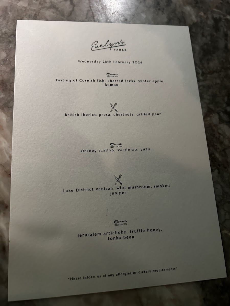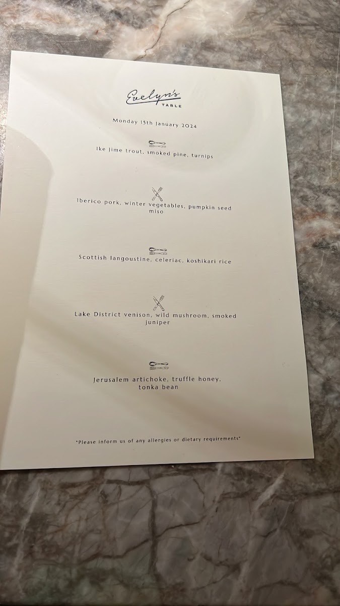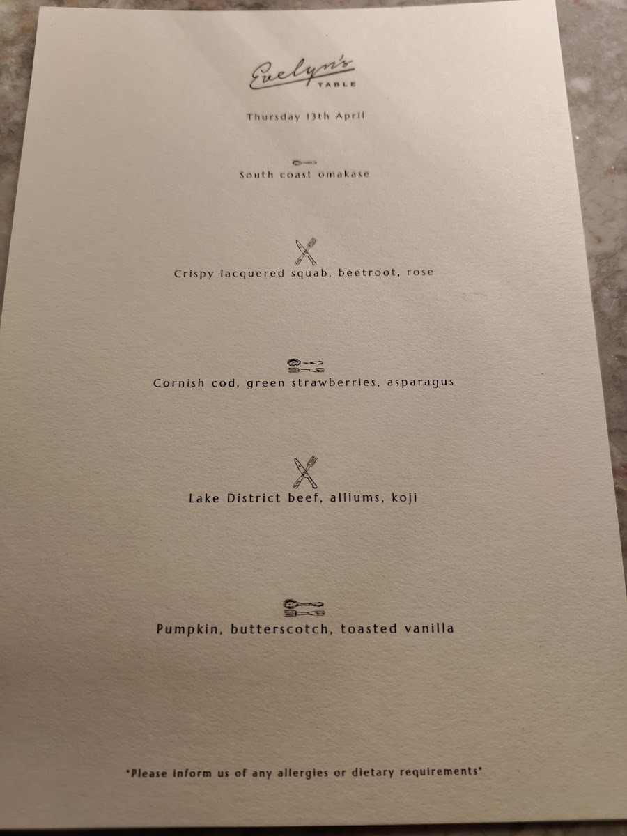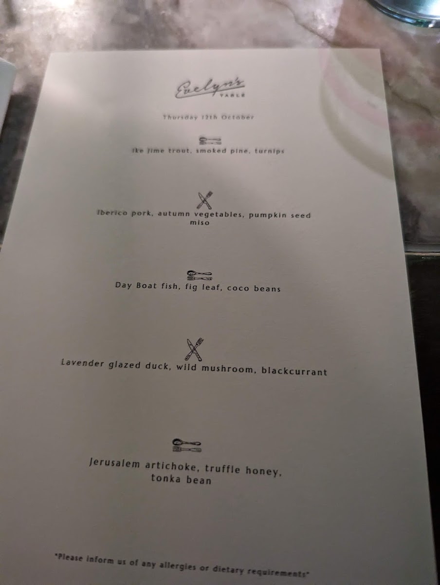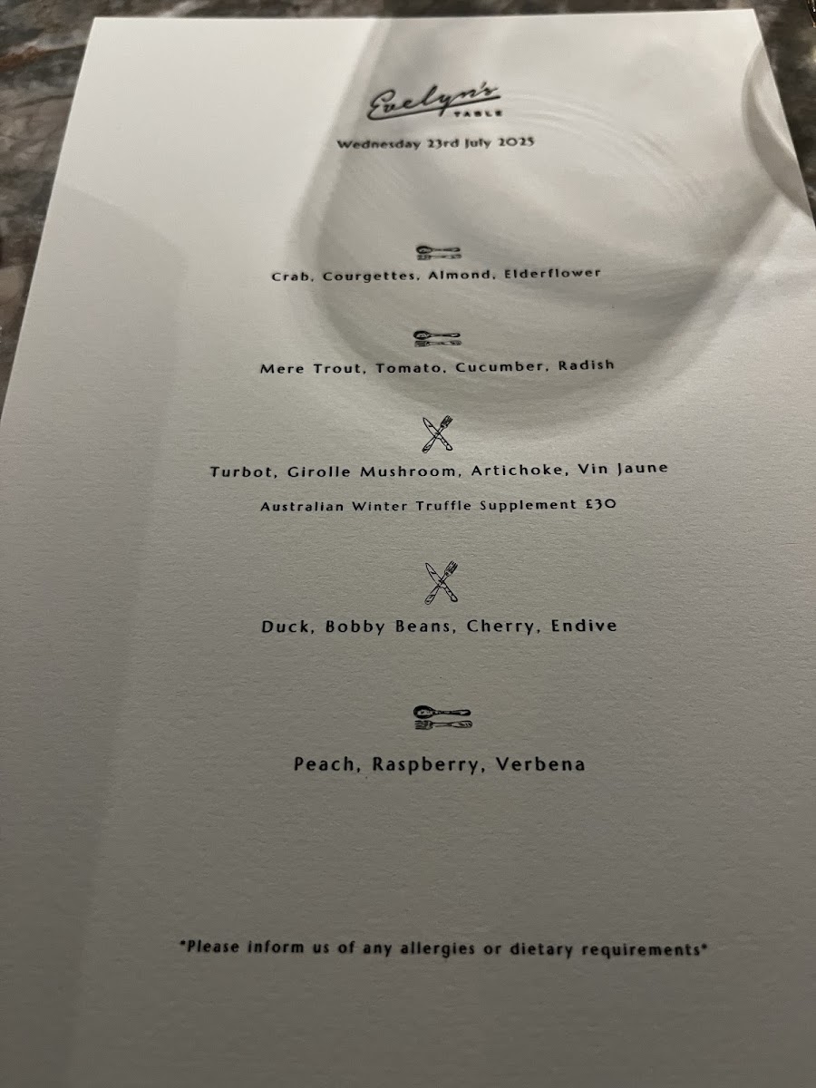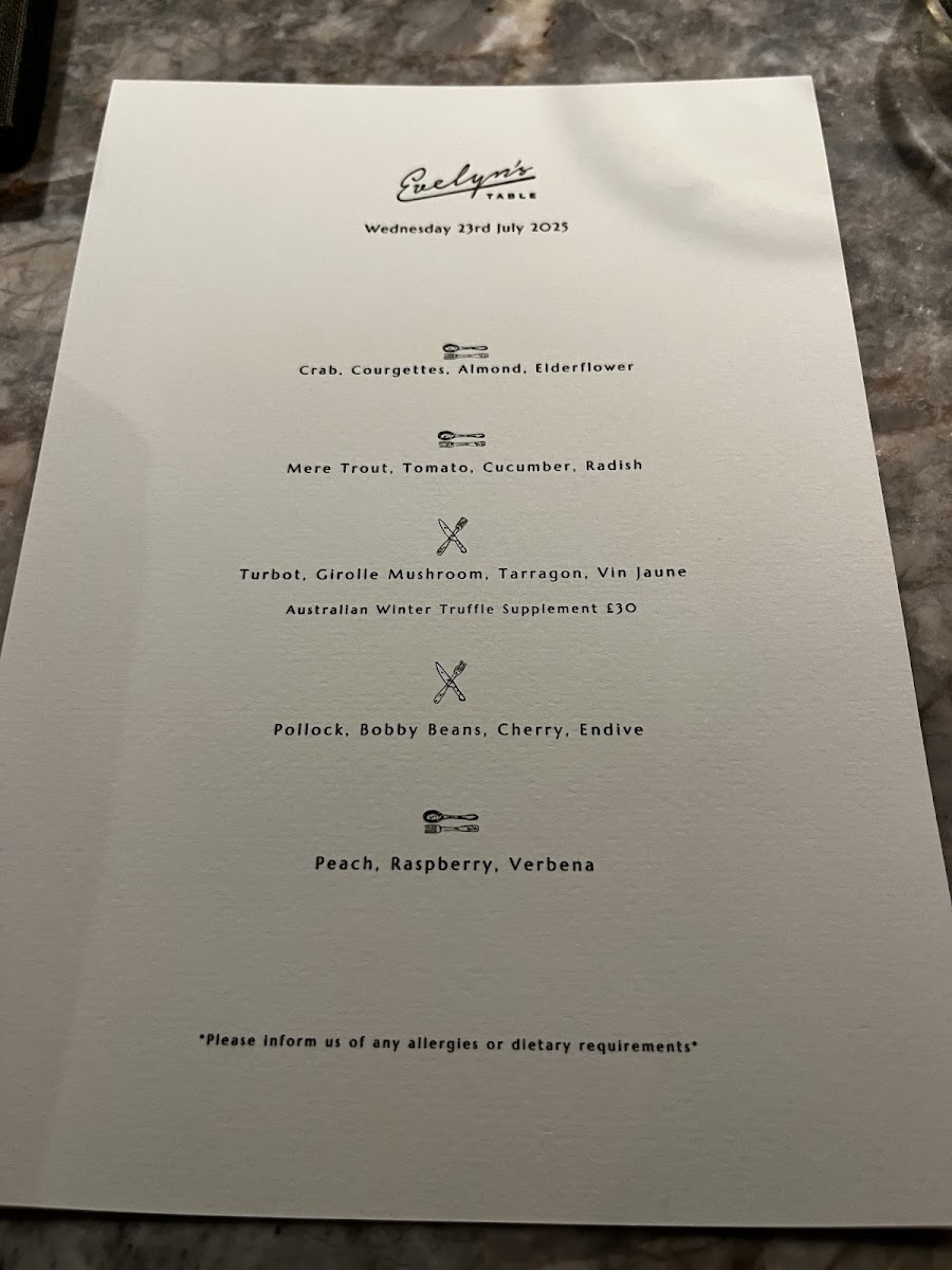 Evelyn's Table Menu